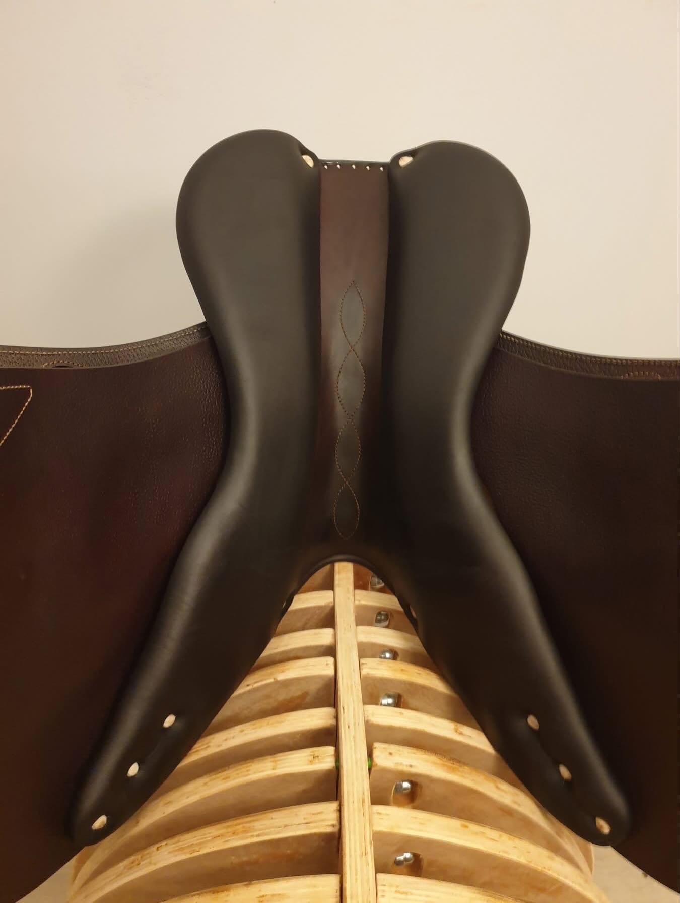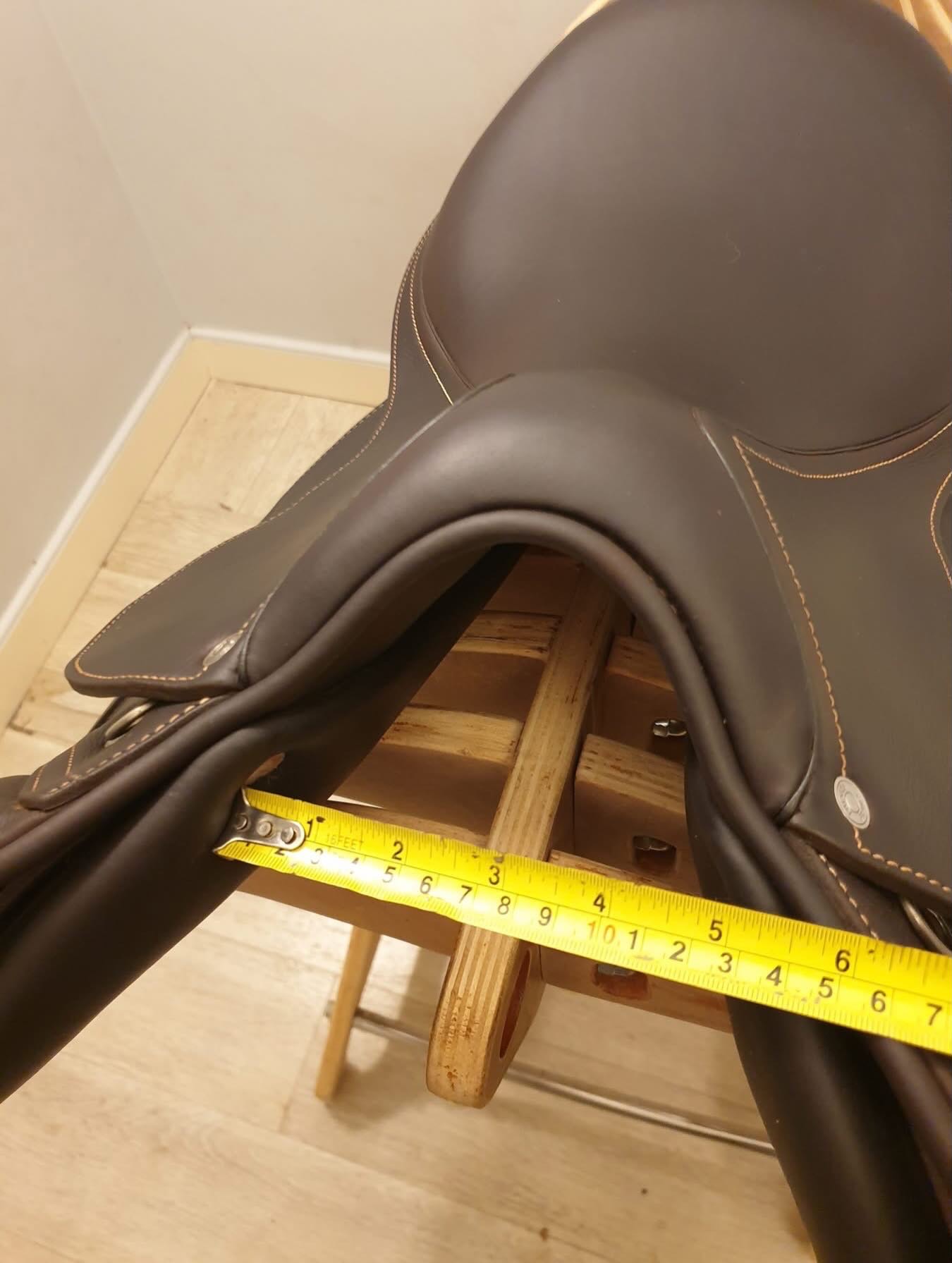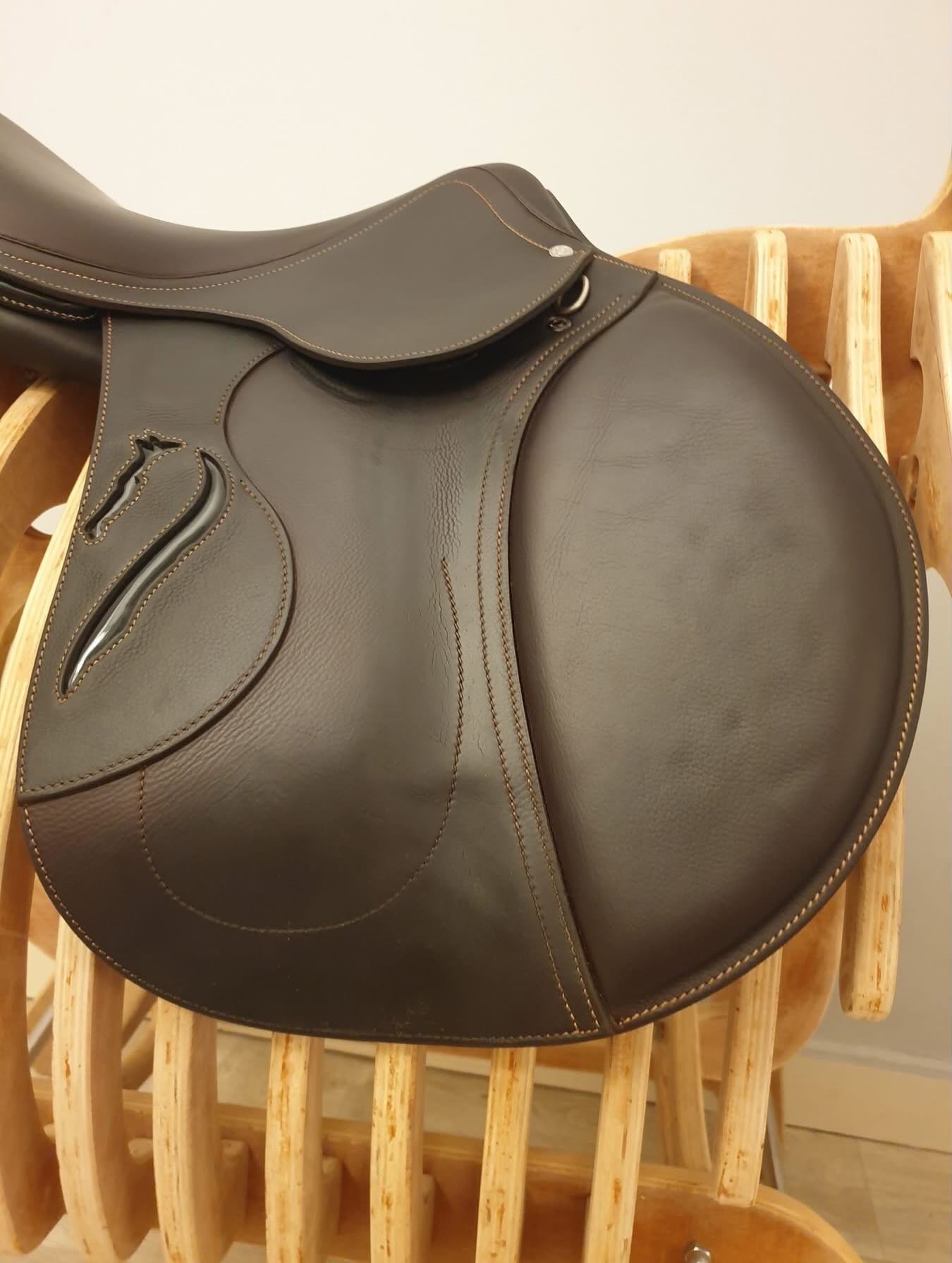 vendre : selle Antarès haut de gamme, en cuir de veau complet avec ajouts noirs personnalisés, taille 17,5” avec rabats. Largeur ZААB 36 cm, parfaite pour les cavaliers de grande taille. Arbre et largeur standard, avec remplissage supplémentaire de 0,5 cm dans les panneaux pour un confort et un maintien optimal du cheval.