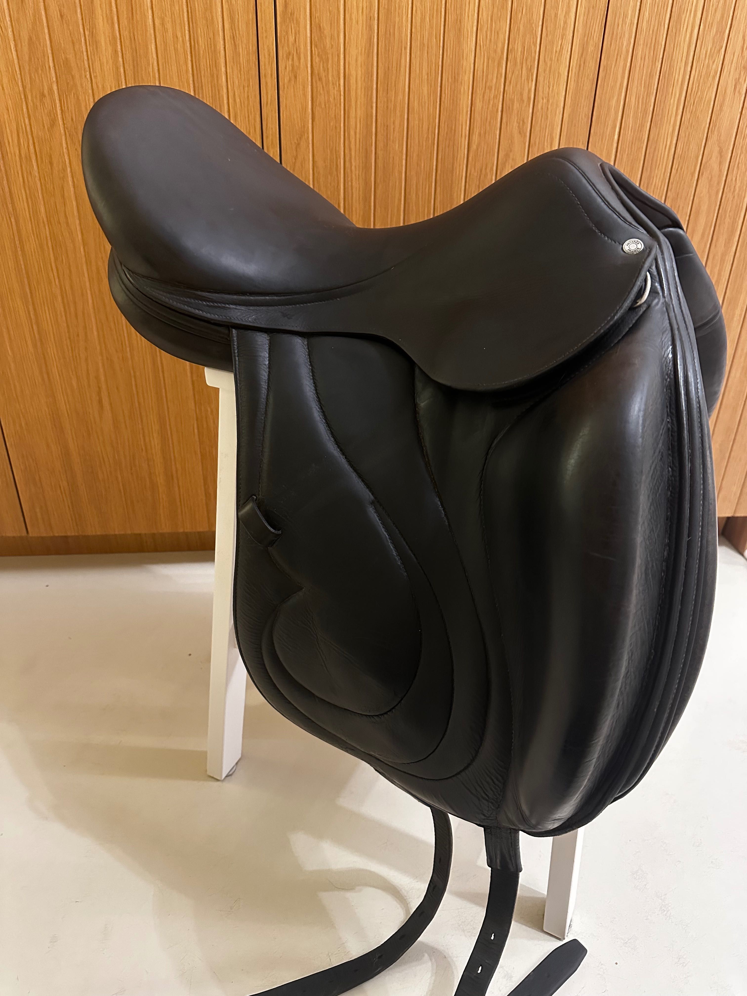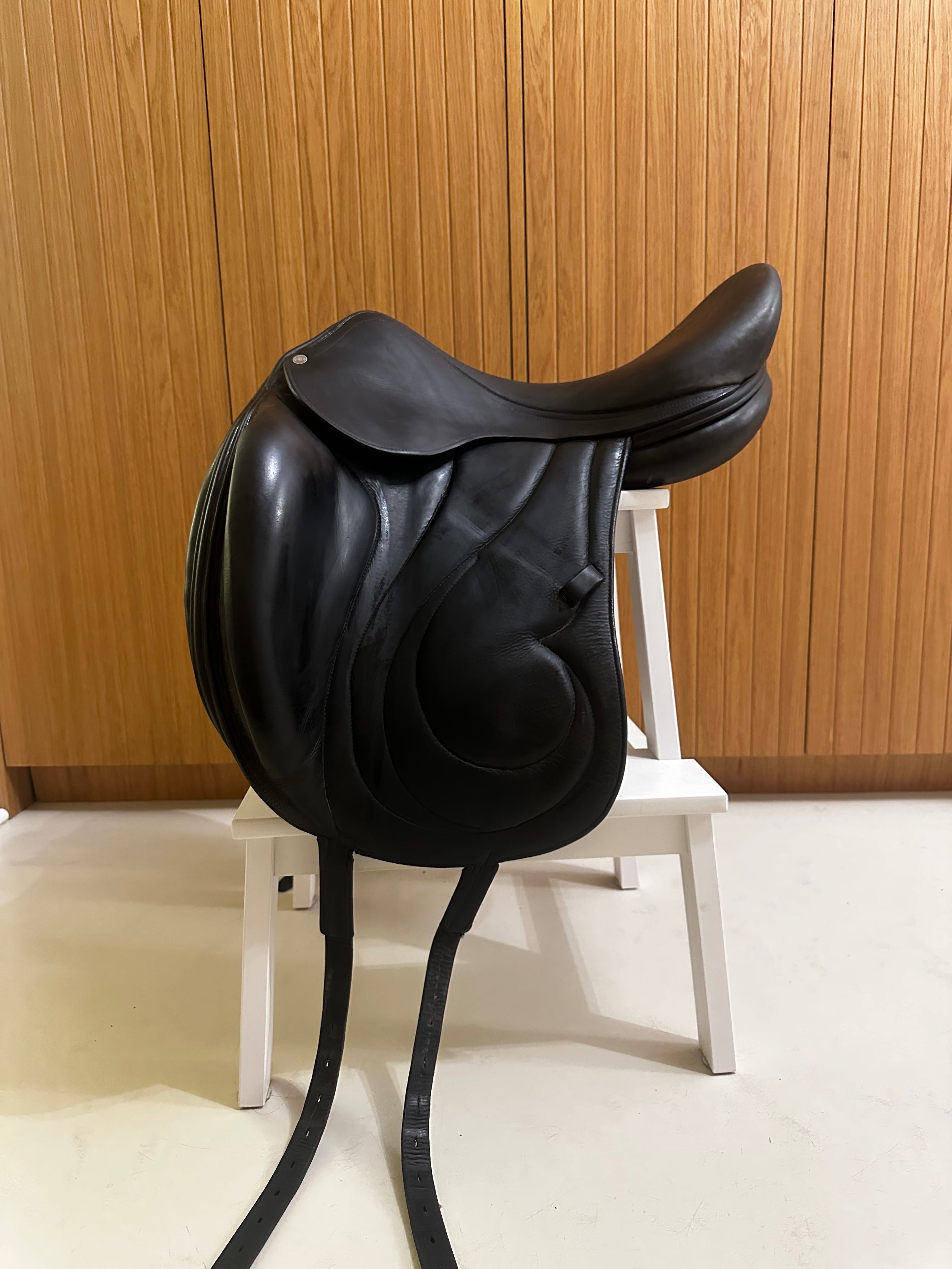 Selle de dressage haut de gamme, conçue pour offrir une position technique et précise.